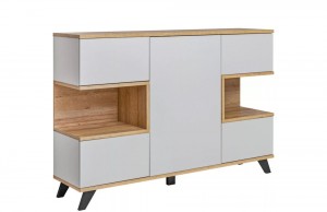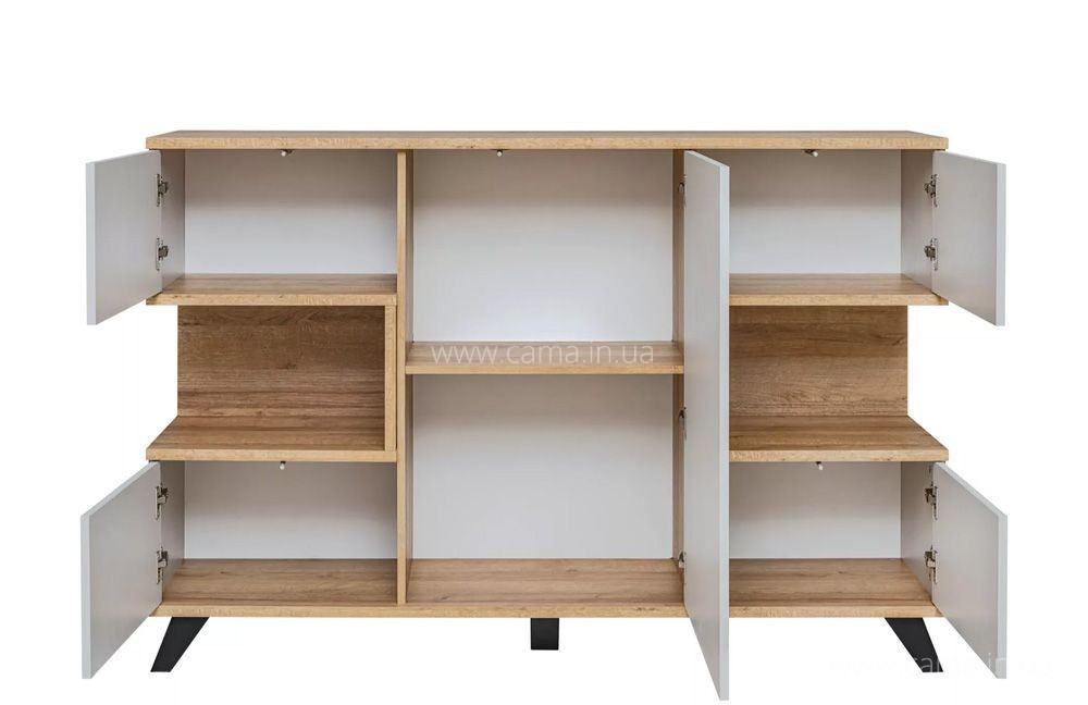 Комод BOGOTA: нажимная дверца посередине, за ними одна полка (2 места). Справа и слева отдельные камеры открываются спереди и сбоку, а также 2 двери, по одной за каждой.