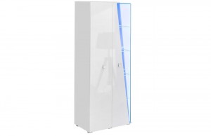 Высокий шкаф: одна дверь, боковые и верхняя часть частично застеклены. Одна обычная дверь. За ними 4 стандартные полки и 4 стеклянные полки со светодиодной подсветкой. Полка Низкая ширма: Одна дверь, боковые и верхняя часть частично застеклены. Одна обычная дверь. За ними 2 стандартные полки и 2 стеклянные полки с подсветкой светодиодной подсветкой. Телевизионный шкаф: борта, столешница и частично застекленная дверь, за дверью две камеры со стеклянной полкой с подсветкой светодиодной подсветкой. Посередине находится отсек со стандартной полкой. Металлические ножки.