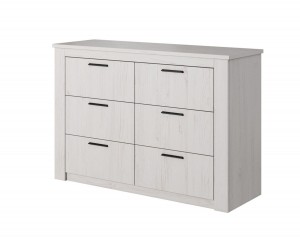 Комод Finn FI 5 мебельной фабрики Cama выполнен в светлом оттенке сосны Андерсен, что создает идеальный контраст с металлическими, черными ручками.