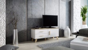 Тумба RTV ЛОТТА 120 1D2S имеет одну дверку, которая открывается в сторону, и два аккуратных ящика