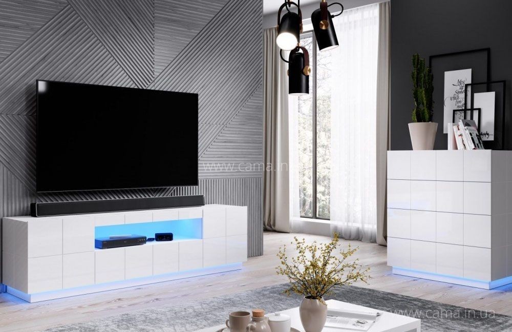 Cama Reja (Кама Рея) – новинка дизайнеров польской фабрики – в первые дни выхода  стала бестселлером нашего магазина. Очень красивая белоснежная мебель в стильном современном дизайне. На данный момент в коллекции доступны для заказа такие элементы – тумба ТВ, два варианта комодов, и прикроватные тумбочки.