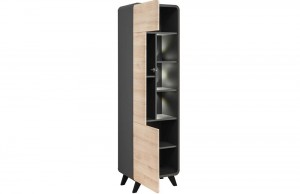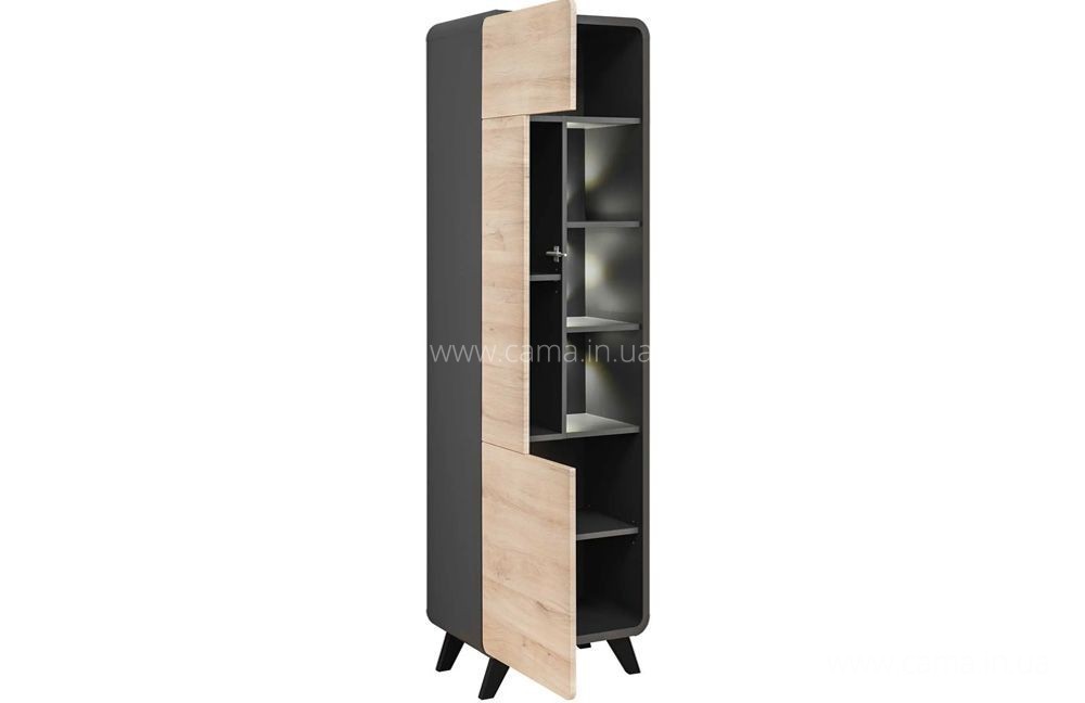 Витрина высокая ROUND: 3 открытых камеры, освещенных белым светодиодным освещением. Дверь нажимная, за ней 4 полки (5 ячеек).