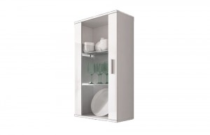 Витрина Сохо навесная маленькая: 115,5/60/29 фасад в глянцевый с стеклом, внутри две стеклянные полки с подсветкой.Подсветка в цену не входит, для данной витрины подходит один комплект подсветки 2LED