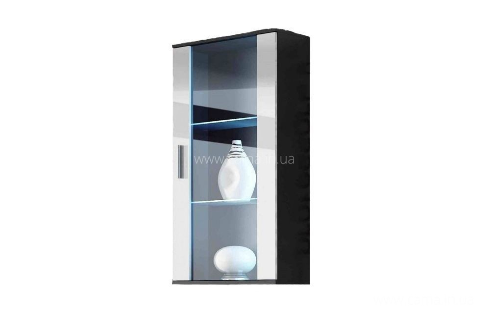 Витрина Сохо навесная маленькая: 115,5/60/29 фасад в глянцевый с стеклом, внутри две стеклянные полки с подсветкой.Подсветка в цену не входит, для данной витрины подходит один комплект подсветки 2LED