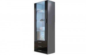 Витрина высокая Сохо: 192/60/41 фасад глянцевый с стеклом, внутри три стеклянные полки с подсветкой, три выдвижных ящика, фасады глянцевые.Подсветка не входит в комплект поставки.Материалы: