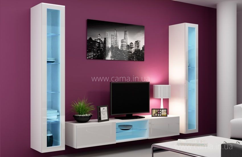 Мебель Виго набор номер 20 – стильный, футуристический дизайн , который при этом функциональный – идеальный выбор для вашей гостиной. Благодаря удобной системе открывания фасада «PUSH-CLICK» вы получаете полный комфорт при использовании мебели.