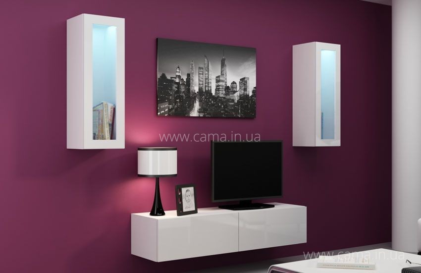 Стенка Vigo 8 это аналог гостиной Виго 7, только глухие пеналы заменены витринами.