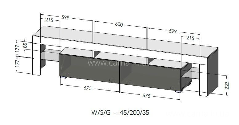 В комоде две дверки которые открываются нажатием (система PUSH-CLICK).