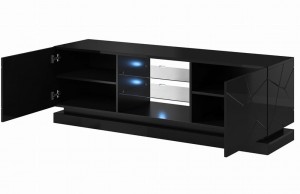 Тумба под телевизор QIU 160 см черного цвета идеально подойдет для гостиной или спальни. Плита МДФ не только эффектно выглядит, но и обладает выдающимися эксплуатационными качествами. Высокая прочность снижает риск преждевременного повреждения или износа. Кроме того, очистка поверхности не является трудоемкой задачей.
