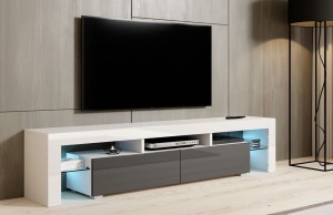 Подставка под телевизор белый серый глянец - TORO 200см - это сочетание функциональности и интересного стиля. Корпус сделан из прочных материалов, а передняя часть - из глянцевой плиты МДФ. Простая и в то же время замечательная форма делает каждую композицию уникальной. Представленная тумба под ТВ белый серый глянец TORO 200 подходит как для минимализма, так и для интерьеров в стиле лофт, а также для классических интерьеров.