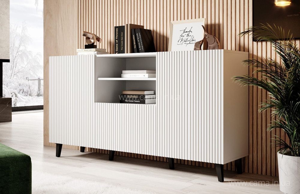 Белый комод PAFOS 150 предоставляет множество возможностей для расстановки, поэтому все зависит от ваших личных предпочтений. Разместить его можно в гостиной, столовой, детской комнате и даже холле. Белый комод PAFOS 150 см прекрасно дополнит интерьер комнаты, а также будет практичен в использовании. Выполненный с максимальной точностью, он понравится даже самым требовательным людям.