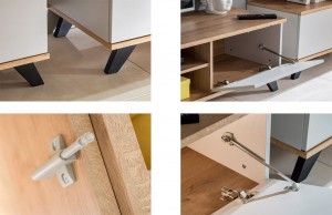 Комод BOGOTA: нажимная дверца посередине, за ними одна полка (2 места). Справа и слева отдельные камеры открываются спереди и сбоку, а также 2 двери, по одной за каждой.