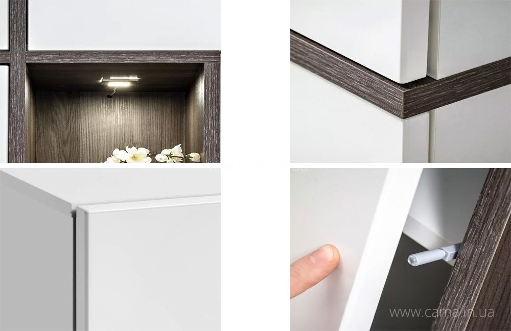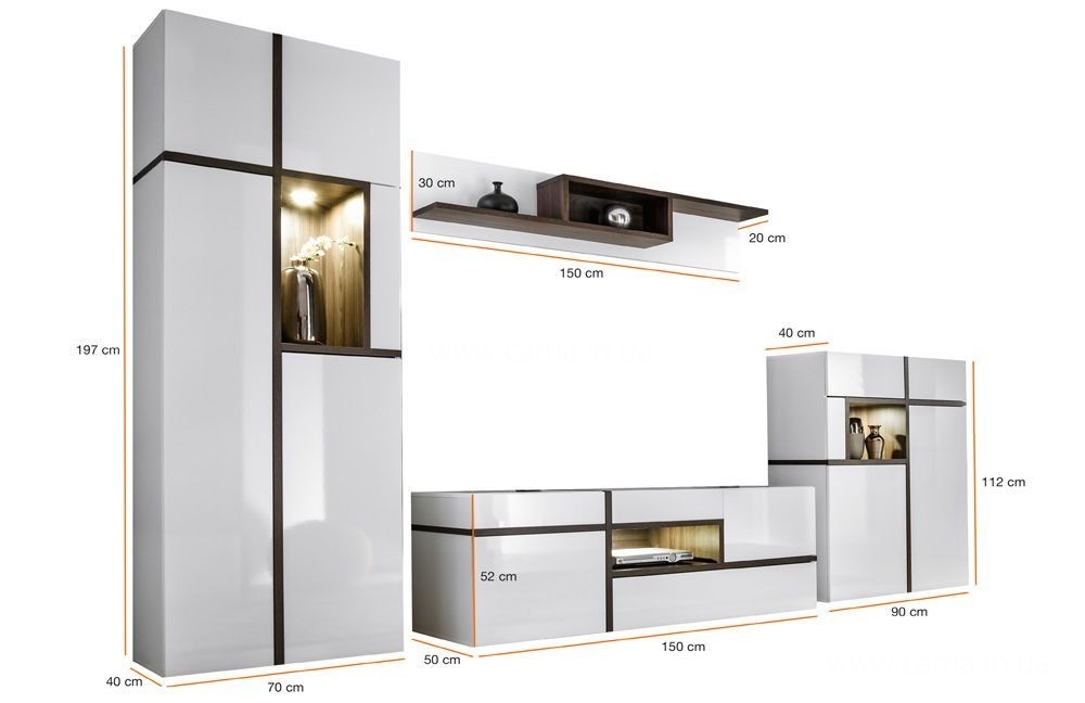 Коллекция Cross - это потрясающее сочетание современного стиля, высокого качества и функциональности. Она позволит воплотить в жизнь самые смелые дизайнерские фантазии. Комплект мебели из этой коллекции станет прекрасным решением для Вашей гостиной. Вместительные полки и выдвижные ящики послужат для удобного хранения элементов декора, книг и других вещей.