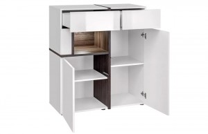 Витрина низкая CROSS Белый+дуб графит/Белый глянец