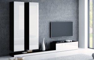Современная, стильная гостиная Pixel 4 от известной фабрики Cama доступен во многих цветовых вариантах - вы можете свободно выбирать цвет как телевизионных тумб, так и навесных витрин.