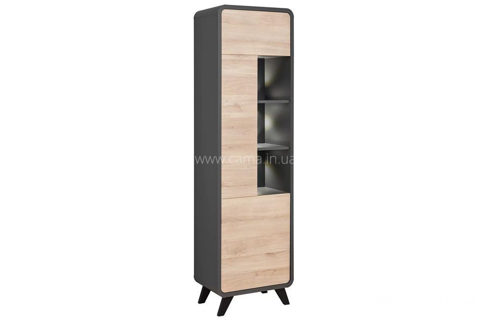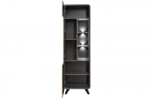 Витрина высокая ROUND: 3 открытых камеры, освещенных белым светодиодным освещением. Дверь нажимная, за ней 4 полки (5 ячеек).