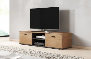 Тумба RTV Soho: 37/140/43 два фасада открываются вниз, по центру две полки под видеотехнику