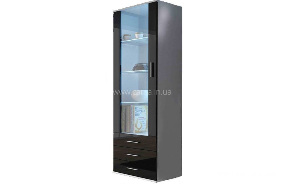 Витрина высокая Сохо: 192/60/41 фасад глянцевый с стеклом, внутри три стеклянные полки с подсветкой, три выдвижных ящика, фасады глянцевые.Подсветка не входит в комплект поставки.Материалы: