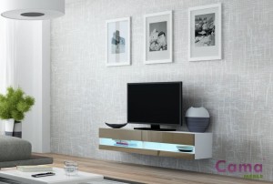 Комод Vigo RTV открытый: 30/140/40, особенность данной модели в том что она имеет один фасад снизу высотой 7см, и один сверху высотой 14см.Нижний фасад не открывается, открывается только больший, верхний фасад. Между фасадами нет стекла.Для комода можно купить подсветку 2LED.Комод предназначен для навешивания на стену. В комплекте есть крепления.