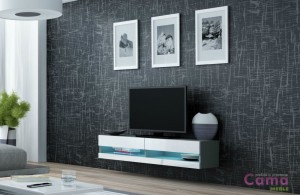 Комод Vigo RTV открытый: 30/140/40, особенность данной модели в том что она имеет один фасад снизу высотой 7см, и один сверху высотой 14см.Нижний фасад не открывается, открывается только больший, верхний фасад. Между фасадами нет стекла.Для комода можно купить подсветку 2LED.Комод предназначен для навешивания на стену. В комплекте есть крепления.
