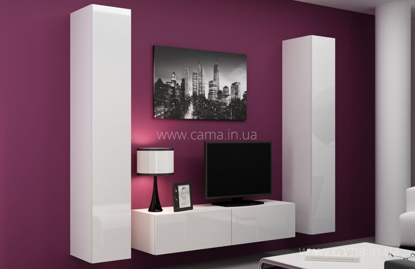 Набор мебели Vigo 9 от дизайнеров фабрики Cama отлично впишеться в современную квартиру, в состав набора входят два высоких пенала (высота 180см) и комод под ТВ шириной 140см.