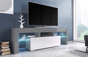 Cama TORO тумба для телевизора 138 см шириной, спереди открывается вниз, за дверкой находится ниша для техники, так же есть две стеклянные полки, с возможностью подключения подсветки.