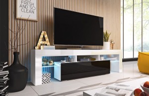 Cama TORO тумба для телевизора 158 см шириной, спереди открывается вниз, за дверкой находится ниша для техники, так же есть две стеклянные полки, с возможностью подключения подсветки.