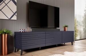 Тумба под ТВ NOVA темно-синего цвета на ножках подойдет для гостиной или спальни. Высокая износостойкость снижает риск преждевременного повреждения или износа. Кроме того, очистка поверхности не является ни сложной, ни трудоемкой задачей. Фрезерованная плита МДФ не только эффектно выглядит, но и обладает выдающимися эксплуатационными свойствами. Матовая темно-синяя тумба под телевизор NOVA добавит стиля и класса, а высокие ножки облегчат уборку под мебелью.